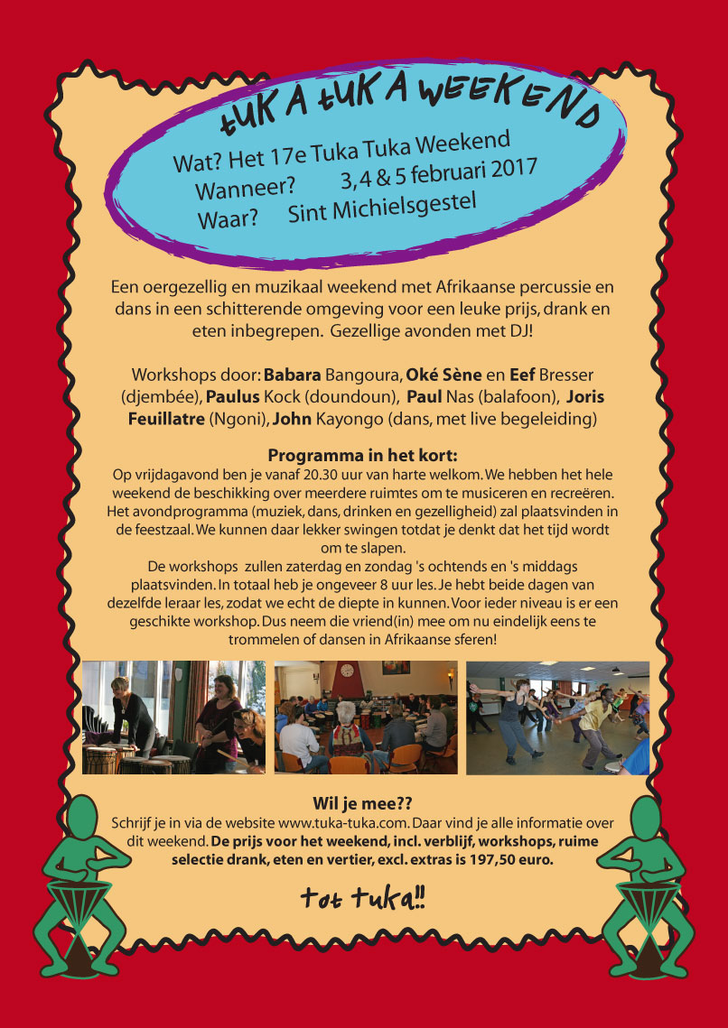 Oké, genoeg geschreven. Geen woorden maar platen, oftewel ons foto album van Tuka Tuka 2017. Als je zelf nog foto’s en/of filmpjes hebt die op deze pagina erbij mogen, stuur ze vooral toe.